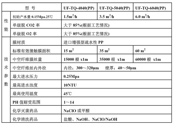 內(nèi)壓式UF-TQ4040(PP) 、UF-TQ5040(PP)和UF-TQ6040(PP)膜組件膜法去除水中CO2和O2的原理圖: